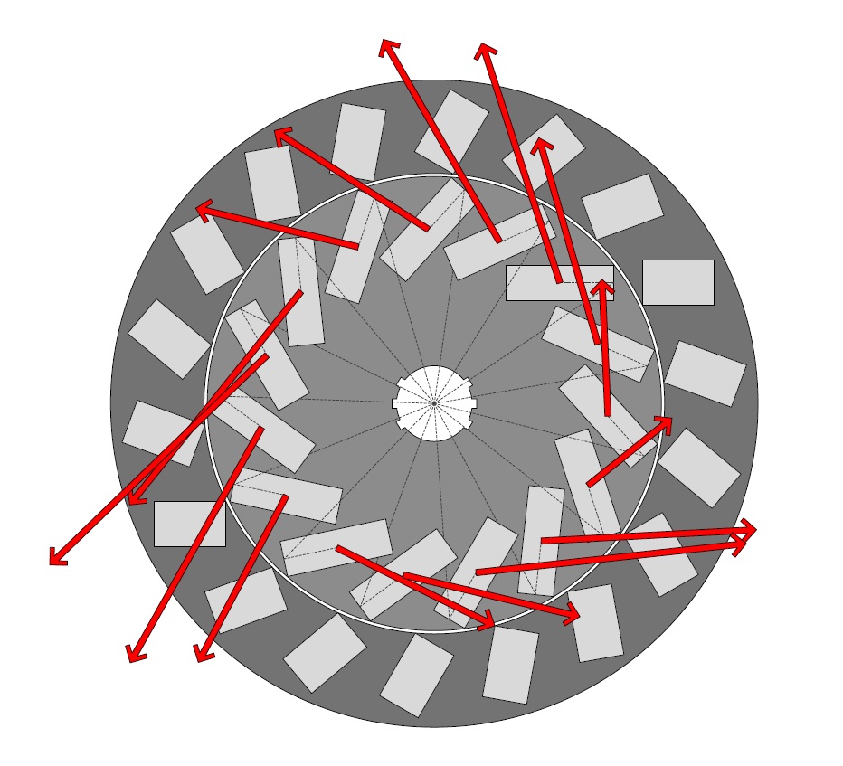 Idea: Tilt magnets to create non-radial forces that curve the force vector into rotation.