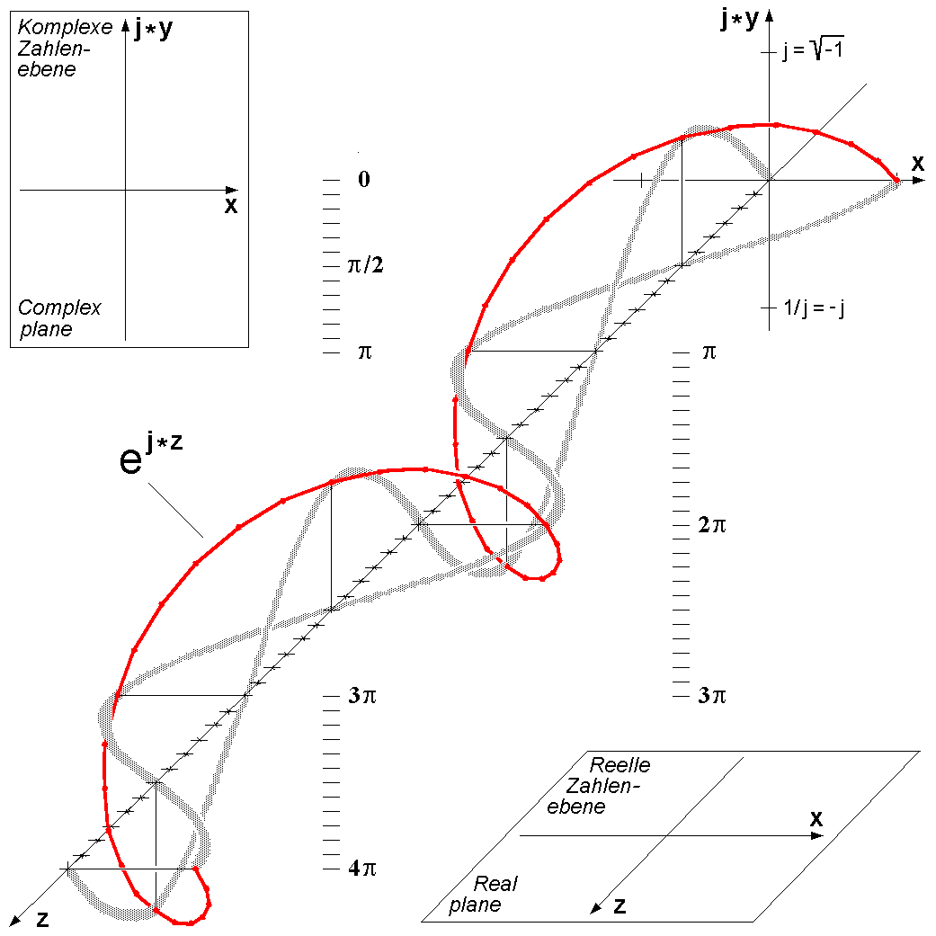 Euler’s equation explains this “nothing that is something” of existence via one of its corollaries. If we set x = π, then the equation becomes eiπ + 1 = 0. This is a direct mathematical demonstration that something, the complicated expression on the left hand side, is equal to nothing, or zero, on the right hand side. But there’s actually more than that too. Euler’s equation itself shows that all numbers produce waves, sines and cosines, centered on zero. All numbers are centered around zero and thus balance out, or reduce, to net zero; there’s all sorts of stuff happening in positive and negative real and imaginary numbers, and all manner of wave activity and vibration, but all of this activity balances out at zero. Hence, the something of existence is actually nothing and thus can exist and have activity without effort, and all of the logic is necessarily consistent with Euler’s Formula and the substance of reality. Here is a graphical representation which shows how Euler’s equation is centered on and thus balances out to zero: