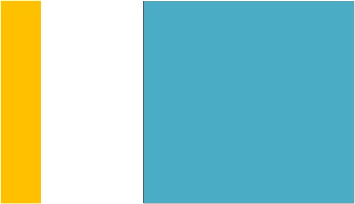 Initial configuration. There is a heated element (left, yellow rectangle) with constant power input thus holding a constant temperature. There is also a passive, unheated, cold object being brought in (right, blue square).