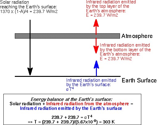 It seems to be something all about how light gets trapped on planet Earth before it can escape. Something about how light has to struggle to escape again, and can only do so by raising its frequency (its spectral temperature).