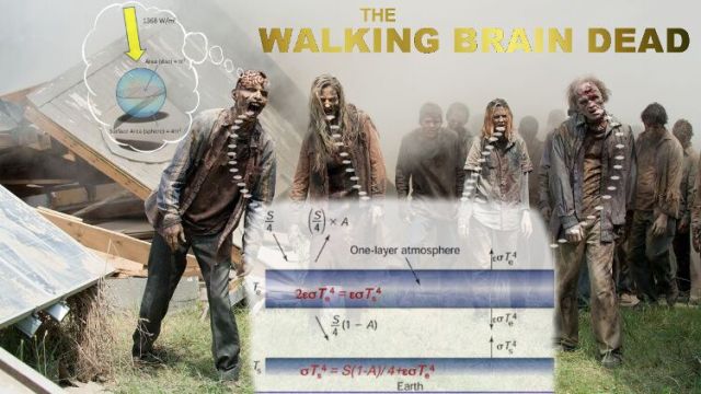 Similarly, with Stephen Hawking. Now today he might really be degenerating mentally, of course, but before this, even with all his faculties in tact, he professed climate alarm, and so even he seemed selectively brain dead, by virtue of the fact that his critical thinking process about climate change was numbed by the authority of other scientists in whom he apparently placed his complete trust on matters of climate change. He failed to confirm the physics behind their claims of doom. Being such a high profile figure, he (in my judgment) was irresponsible for doing this. Before proclaiming doom of other scientists, one should confirm the reasoning to see that their understanding of physics is consistent with one’s own. Especially with the high, … high level of physics knowledge Hawking possessed, you would have thought that he, at least, checked their math, before joining the doom band wagon.
