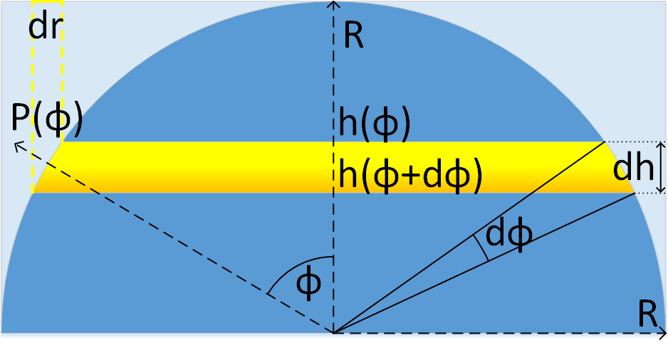 dA(φ) = 2πR²·sin(φ)dφ