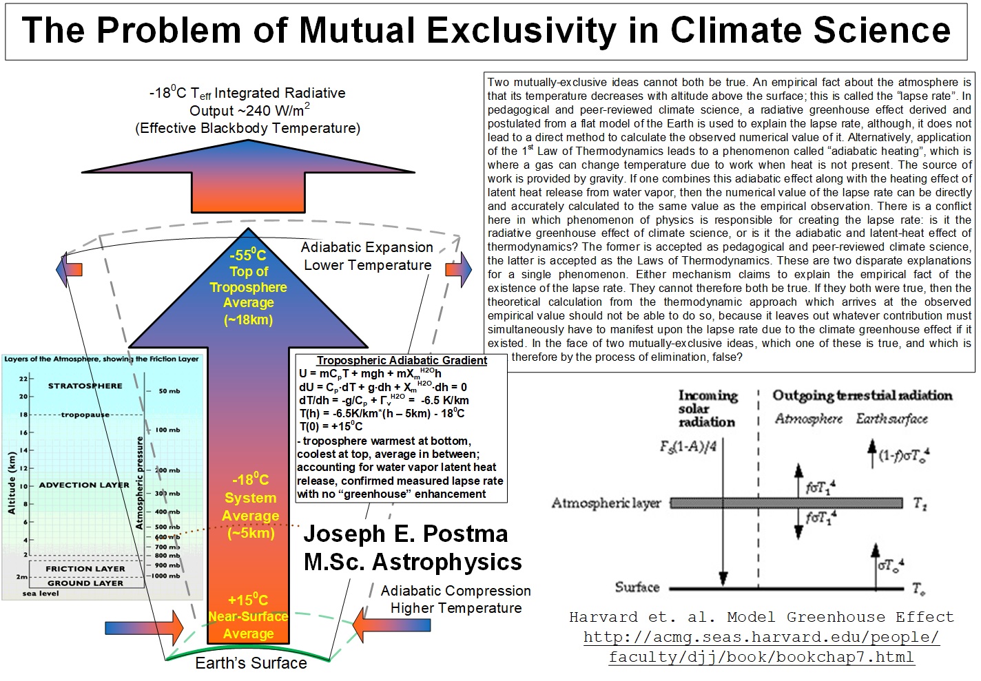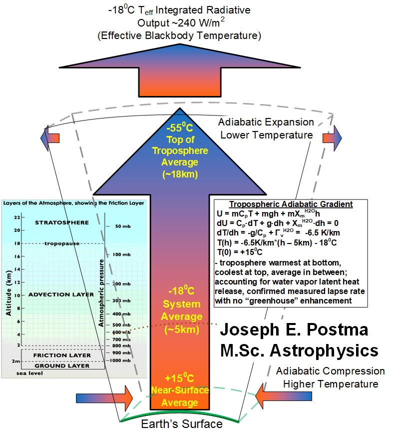 And it is a very curious thing that I was never taught at any point in my entire astrophysics training through post-graduate work that there is, in fact, an alternative explanation for why the temperature of the atmosphere changes with altitude above the surface; I only discovered this alternative explanation though personal research in collaboration with other professional scientists affiliated as an online interest seeking to understand the climate change problem.